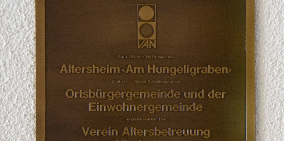 Am 1. Oktober 1984 konnte das Alterszentrum „Am Hungeligraben“ dank grosszügiger Schenkungen der Ortsbürgergemeinde und der Einwohnergemeinde eröffnet werden. Der Verein Altersbetreuung Niederlenz als Eigentümer des Zentrums leistete seinen Beitrag durch viele unbezahlte Arbeitsstunden seines Vorstandes und durch das Einbringen des zweckgebundenen Altersheimfonds. Folgende Personen und Institutionen haben die Eröffnung mit grösseren Spenden ermöglicht: